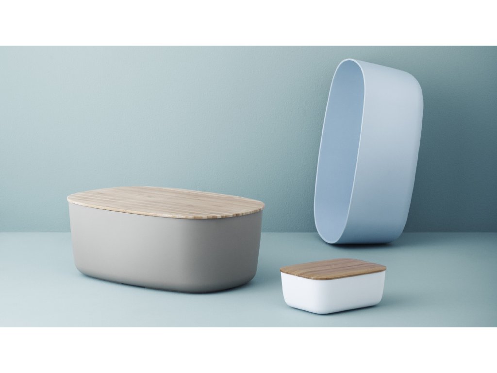 Tuto krásnou máslenku si můžete vybrat ve třech barvách a případně ji sladit s chlebíkem, který se vyrábí ve stejném provedení. Nám se moc líbí materiál melamin v tlumených tónech v kombinaci s bambusovým víčkem.