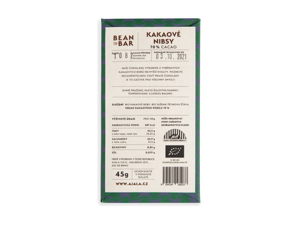 ČOKOLÁDA AJALA KAKAOVÉ NIBSY 45g BIO