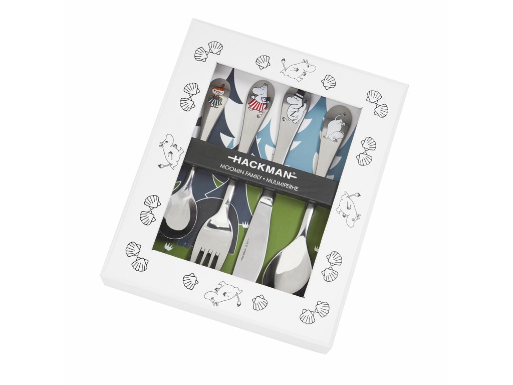 Dětské příbory pro značku Hackman vytvořila ilustrátorka a návrhářka Tove Slotte na základě originálních ilustrací a výkresů od finské autorky Tove Jansson, která dala život postavičkám z kouzelného údolí Muminků. Na těchto najdete maminku, tatínka, Mumínka a malou Majku.