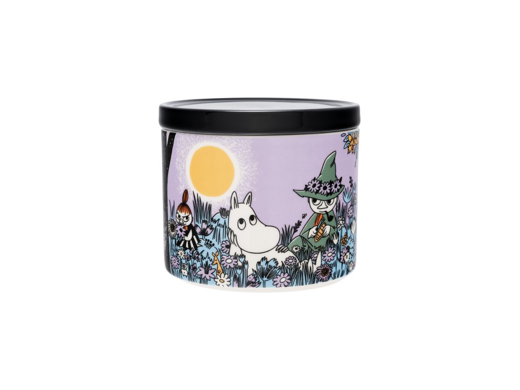 Dóza ze sady nádobí s Mumínky od finské značky Arabia. Kolekce Friends Forever znázorňuje Muminka, Čmuchálka a Malou My, kteří se rozhodli žít tak, aby zažívali opravdovou radost ze života, která pramení z toho, když děláte to co vás dělá šťastnými, společně s přáteli a rodinou. Dóza má porcelánové víčko se silikonovým proužkem a doplnit ji můžete o hrníček, misku, tác nebo talíř.