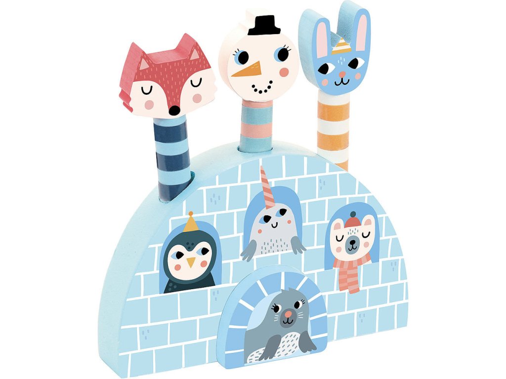 Krásná dřevěná vystřelovací hra s ilustracemi umělkyně Michelle Carlslund v motivech zimy a severu. Z iglú vyskakují 3 postavičky – liška, zajíc a sněhulák.