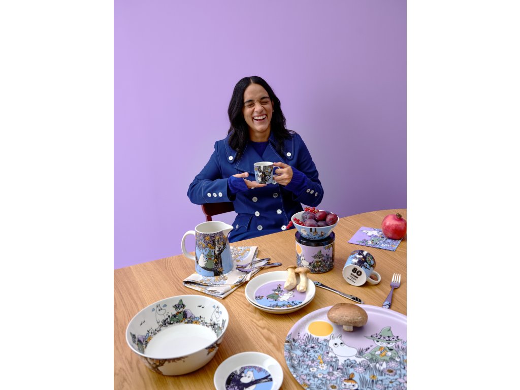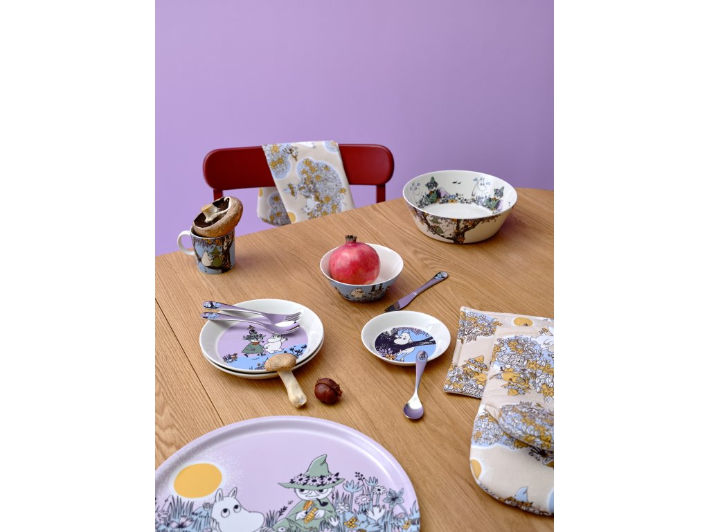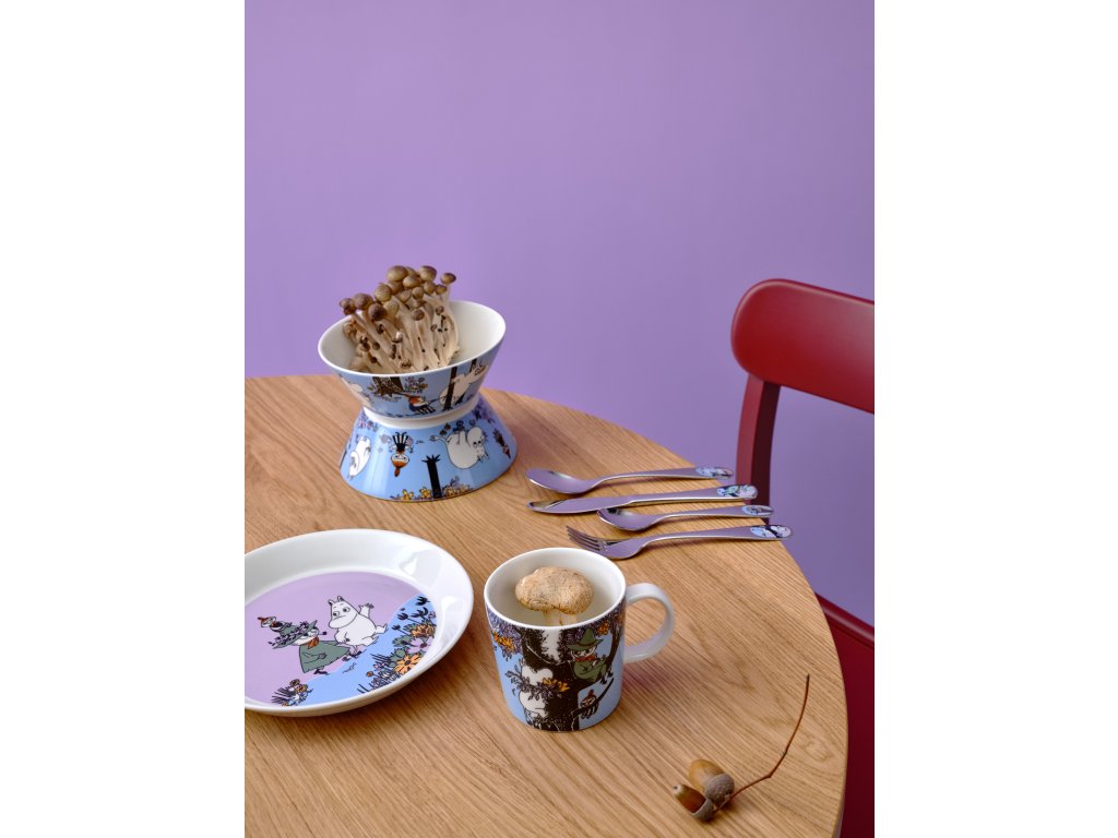 Moomin by Arabia, jak již název napovídá, spadá pod finskou značku designového nádobí Arabia, založenou v roce 1873. Okouzlující ilustrace na porcelánovém nádobí vypráví příběh ze slavných dětských knížek o Mumíncích, rodině roztomilých bílých trolů, kteří spolu se skřítky a zvířátky z pohádkového údolí zažívají dobrodružství a čelí různým nesnázím.