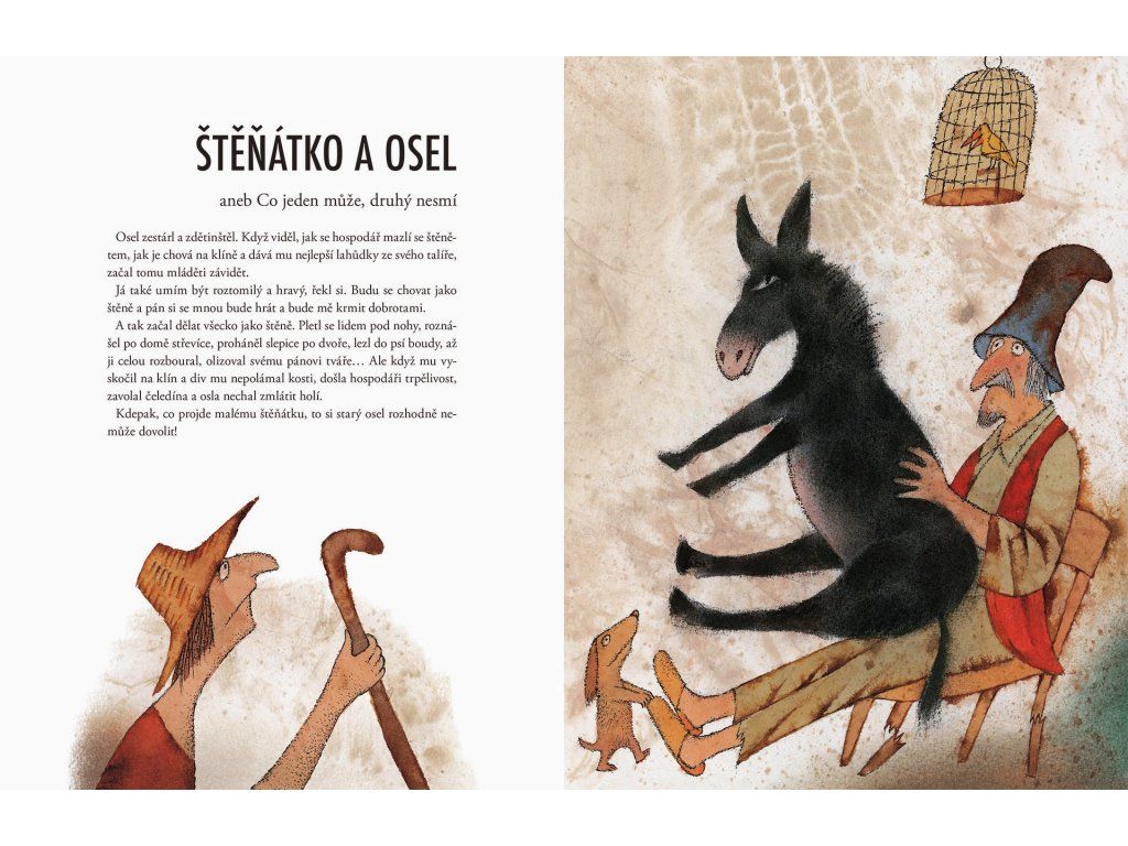 Kniha první... Ezopovy bajky Ezop, černý otrok, žil už v 6. století před Kristem. Uměl skvěle vyprávět a jeho příběhy jsou aktuální i dnes. Knihu doplnil ilustracemi Adolf Born, který svými osobitými obrázky zvířat dotváří tu pravou atmosféru. Bajky jsou přesně tak dlouhé, jak jen malé děti vydrží číst, možná si pak budou raději listovat krásnými ilustracemi nebo bude řada na vás!