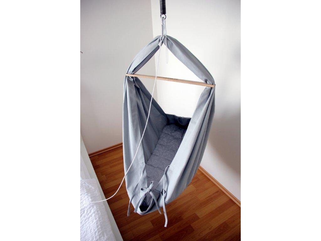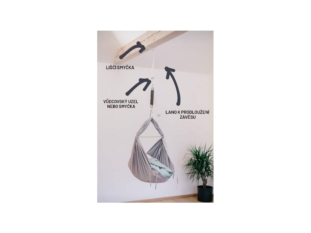 Pružina, která není součástí balení(!), ale kterou doporučujeme přikoupit, zajišťuje rytmické houpání (nahoru – dolů). Tento pohyb miminko zažívalo při chůzi maminky celé těhotenství, a proto mu navozuje pocit bezpečí.