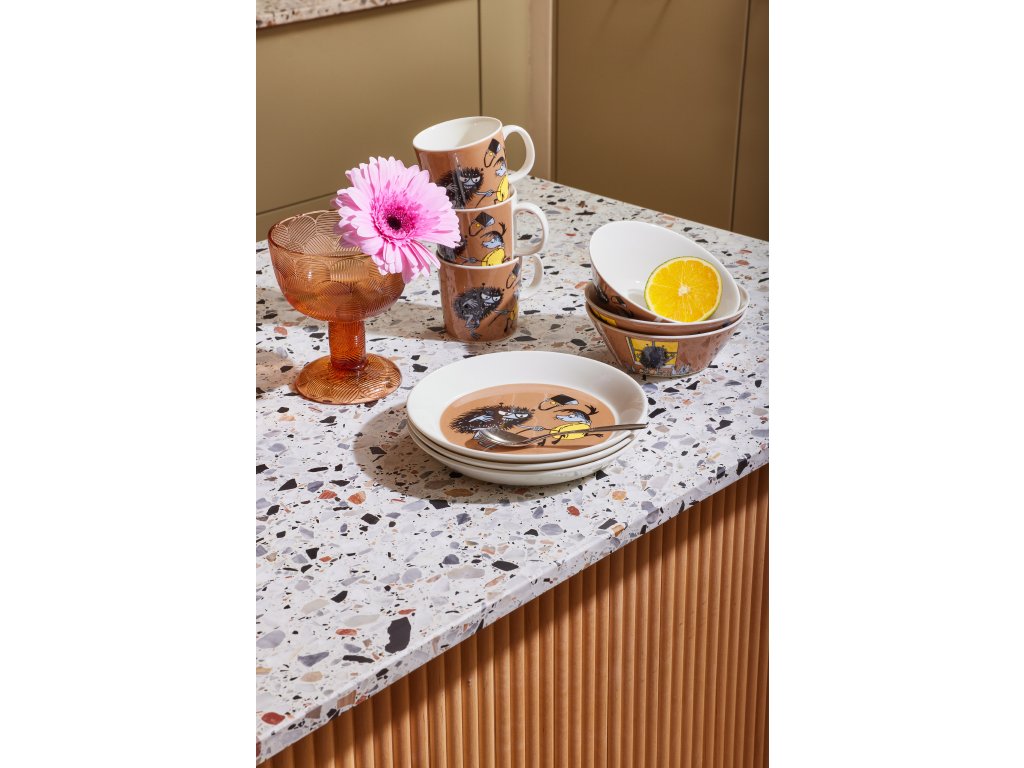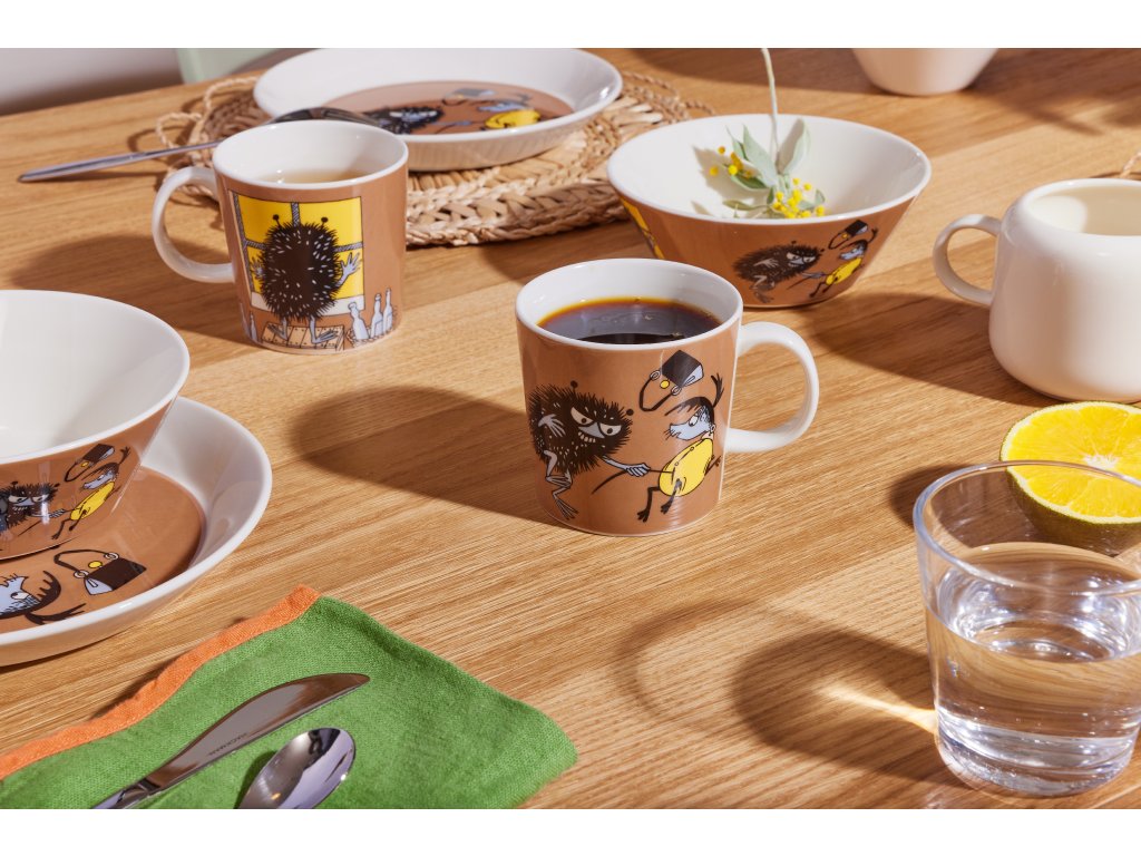 Moomin by Arabia, jak již název napovídá, spadá pod finskou značku designového nádobí Arabia, založenou v roce 1873. Okouzlující ilustrace na porcelánovém nádobí vypráví příběh ze slavných dětských knížek o Mumíncích, rodině roztomilých bílých trolů, kteří spolu se skřítky a zvířátky z pohádkového údolí zažívají dobrodružství a čelí různým nesnázím.
