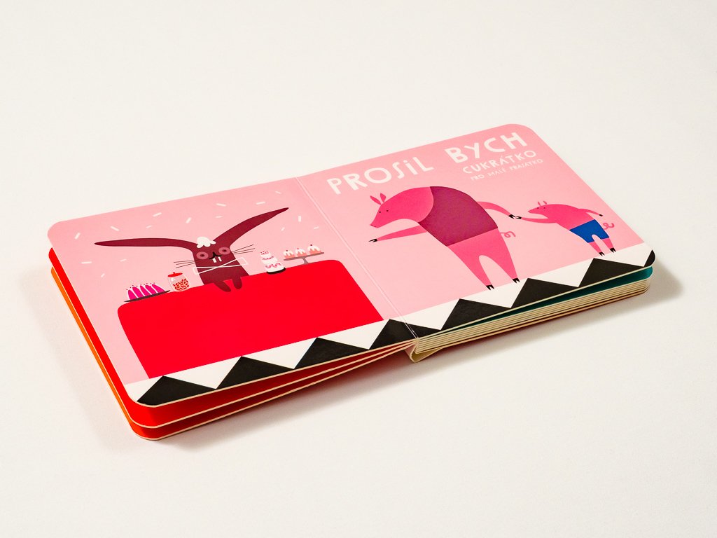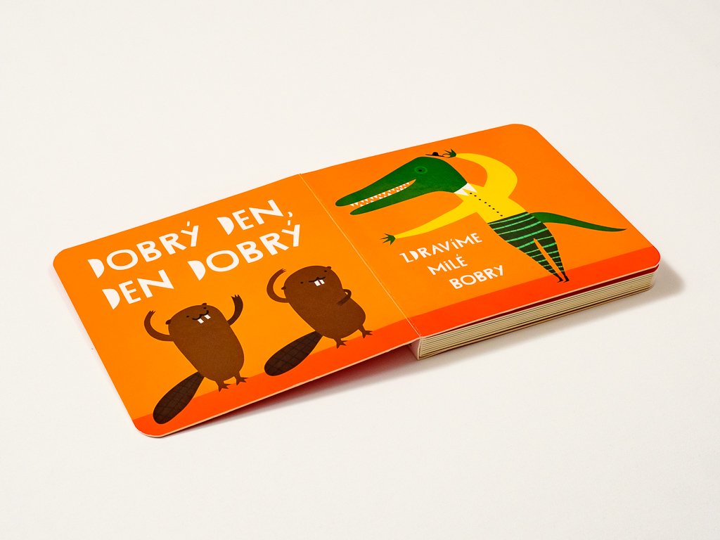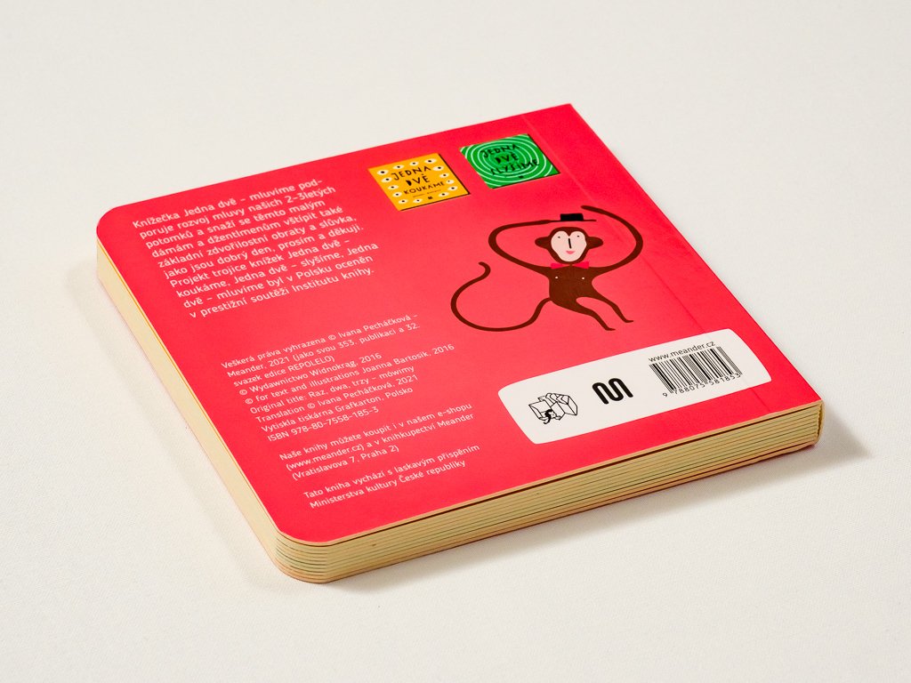 Leporelo pro úplně nejmenší, ve kterém se autorka vzdává textu a míří zejména na rozvoj řeči. Na stránkách najdete kontrastní barevné obrázky a jednoduché říkanky obsahující základní zdvořilostní fráze jako děkuji, dobrý den, promiň... Leporelo je součástí trojice knížek Jedna dvě koukáme a Jedna dvě slyšíme.