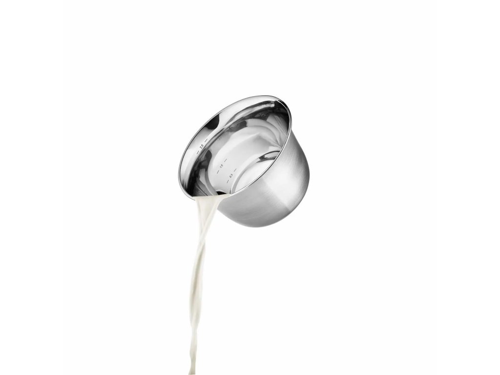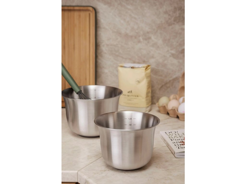 Praktický pomocník do vaší kuchyně, ideální na šlehání, míchaní, hnětení a skladování potravin. Mísa je vyrobená z 90% recyklované nerezové oceli a díky tomu můžete bez obav používat kovové náčiní a ruční mixér. Mísa je odolná vůči teplotám. Uvnitř mísy jsou značky pro snadnější odměření ingrediencí. Dno je zakulacené a opatřené gumovým kroužkem pro ideální stabilitu. Lze mýt v myčce.
