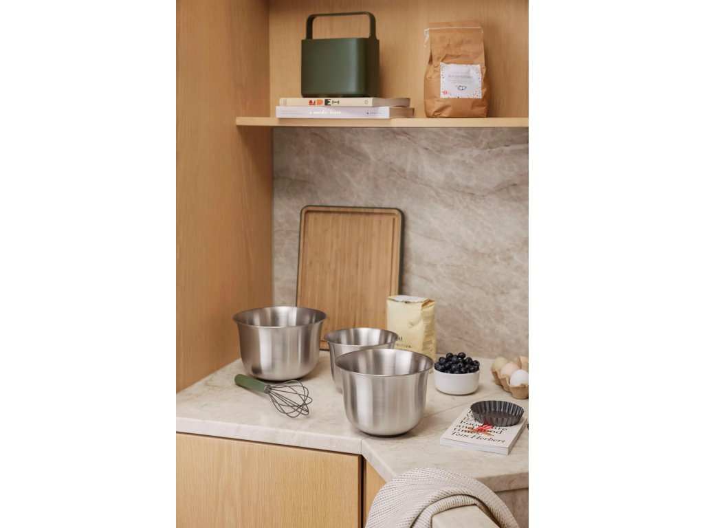 Praktický pomocník do vaší kuchyně, ideální na šlehání, míchaní, hnětení a skladování potravin. Mísa je vyrobená z 90% recyklované nerezové oceli a díky tomu můžete bez obav používat kovové náčiní a ruční mixér. Mísa je odolná vůči teplotám. Uvnitř mísy jsou značky pro snadnější odměření ingrediencí. Dno je zakulacené a opatřené gumovým kroužkem pro ideální stabilitu. Lze mýt v myčce.