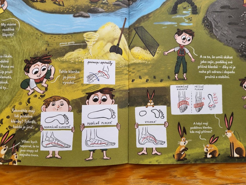 Obrázková publikace zkušené podiatričky Jany Vaškové seznamuje čtenáře hravě a nenásilnou formou s tím, jak nohy ovlivňují fungování celého těla, proč nás někdy bolí, jak se správně obout a proč je dobré občas chodit naboso. Součástí knihy jsou interaktivní prvky — QR kódy nabízejí doplňující animace a videa s cvičením, které lze zahrnout do každodenní rutiny doma či ve školce. Příručka se tak stane dobrým pomocníkem nejen rodičů, ale i pedagogických pracovníků, kteří se s problematikou zdravých nohou u dětí potýkají denně.
