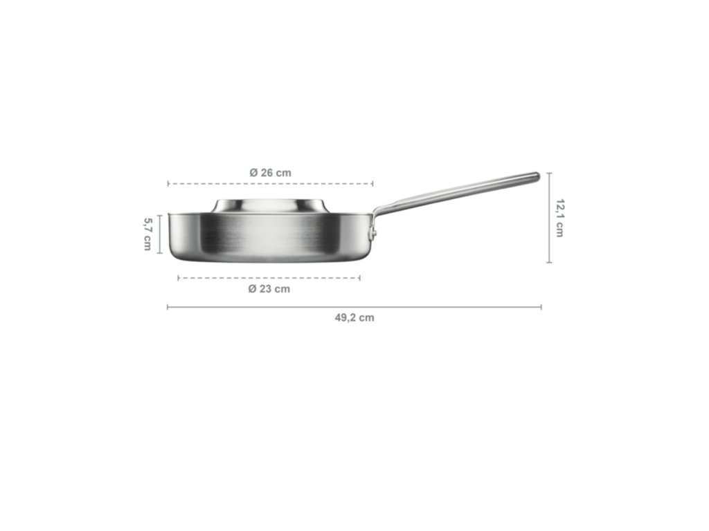 Odolná pánev Norden s poklicí, 26 cm, má silnou základnu a vícevrstvou strukturu, která pánev rovnoměrně zahřívá. Díky vysokým bočnicím je pánev ideální pro přípravu tekutých pokrmů. Hliníkové jádro mezi ocelovými vrstvami ohřívá jídlo rovnoměrně a efektivně na všech typech sporáků. Povrchová úprava Ceratec™ a její minerální úprava Thermium™ zaručují pánvi prvotřídní nepřilnavé vlastnosti při vysokých teplotách, aniž by to bylo na úkor jejího stylového designu. Díky tomu jsou pánve Norden vhodné pro přípravu surovin, které vyžadují šetrné zacházení a zvýrazní chuť jídla. Pohodlná rukojeť a víko z nerezové oceli se zahřívají méně než obvykle.