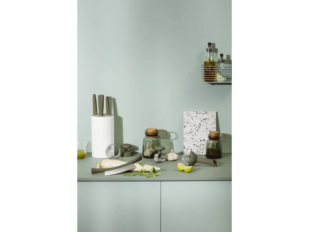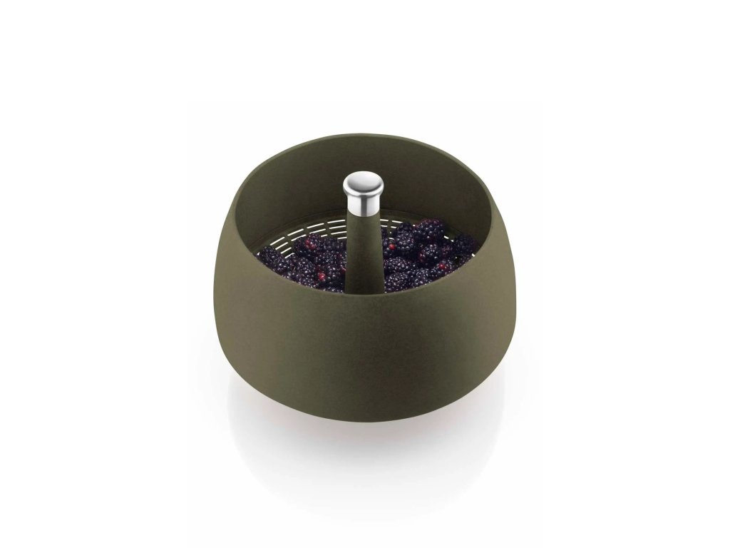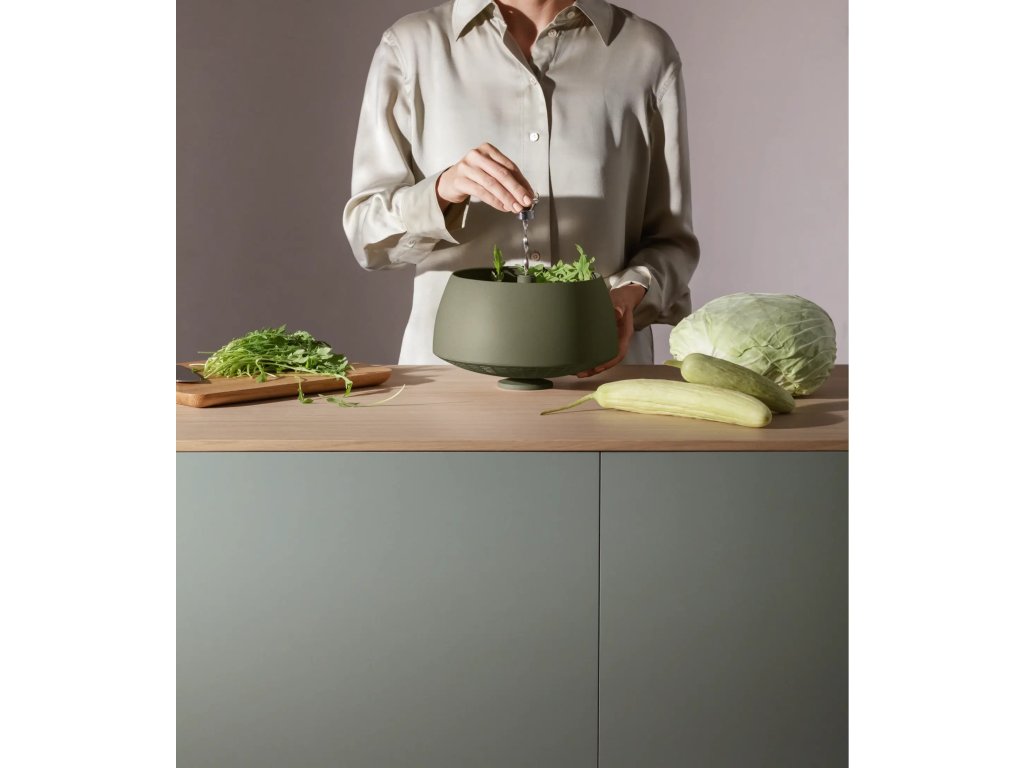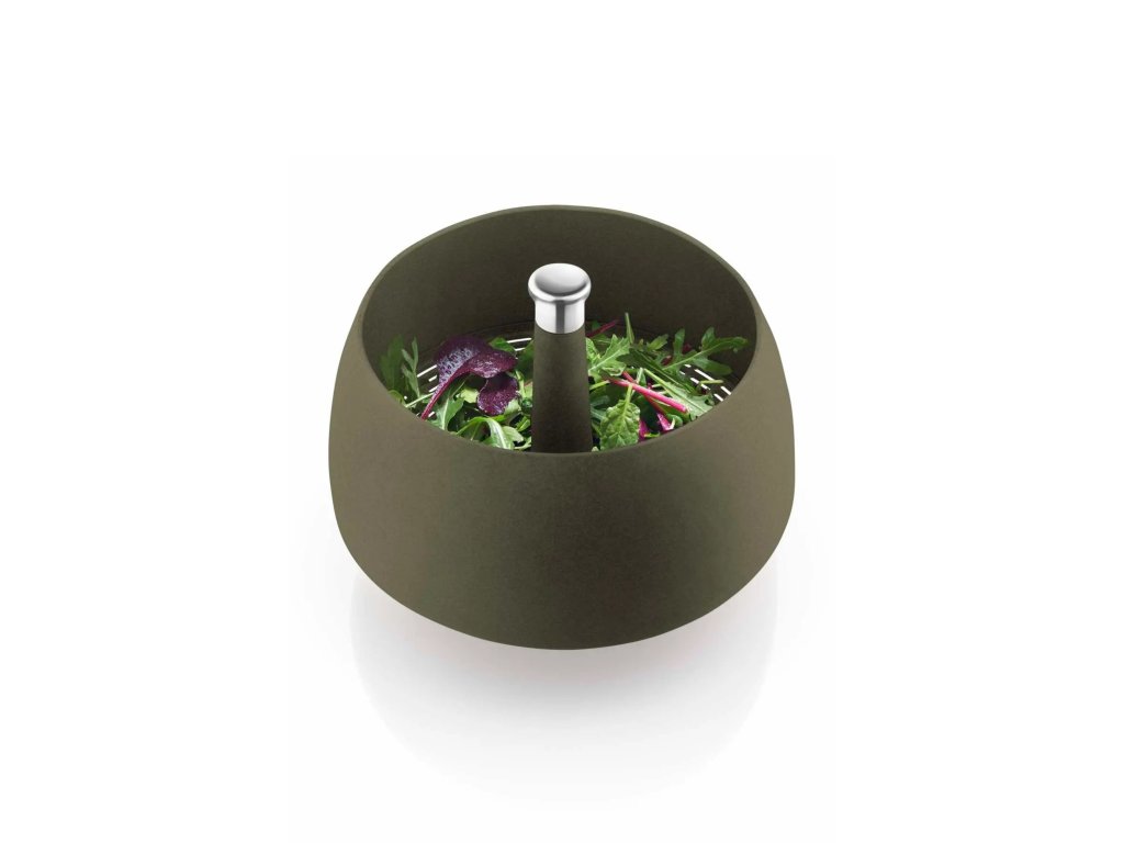 Odstředivka na salát a cedník v jednom – geniálně jednoduché. Salát v odstředivce opláchneme a pak odstředíme veškerou vodu, která odteče otvory ve dně. Můžete v ní opláchnout ovoce, zeleninu a třeba nechat odkapat těstoviny.
