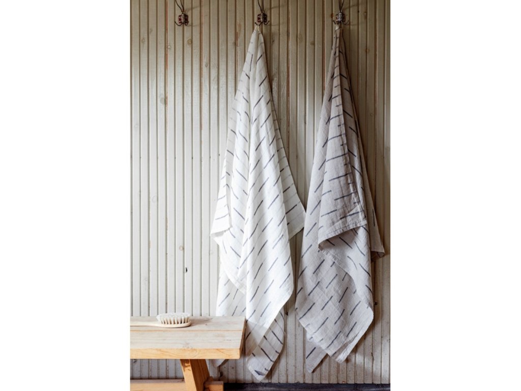 Další z krásných osušek tkaných v tradiční finské přádelně Lapuan Kankurit, je vyrobena z nádherného lnu pěstovaného dle standardů Öko-Tex. My ji používáme nejen jako osušku, ale sem tam se hodí i jako lehký ubrus, jako šála na cestování, na pláži do ní zabalíte malé plavce krásně celé tak, že jim nebude zima, rychle uschne a do tašky se vejde mnohem lépe než jakýkoliv froté ručník.