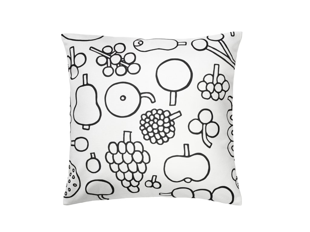 Polštář pokrytý ovocem z kolekce OTC od značky iittala. Kolekce vznikla na základě archivovaných skic Oivy Toikky a projevuje se v ní jejich typická barevnost a pestrost. I přes to v ní najde pár černobílých a přitom hravých kousků, jako je například tento povlak na polštář. Dejte mu prostor v obývacím pokoji nebo v ložnici.