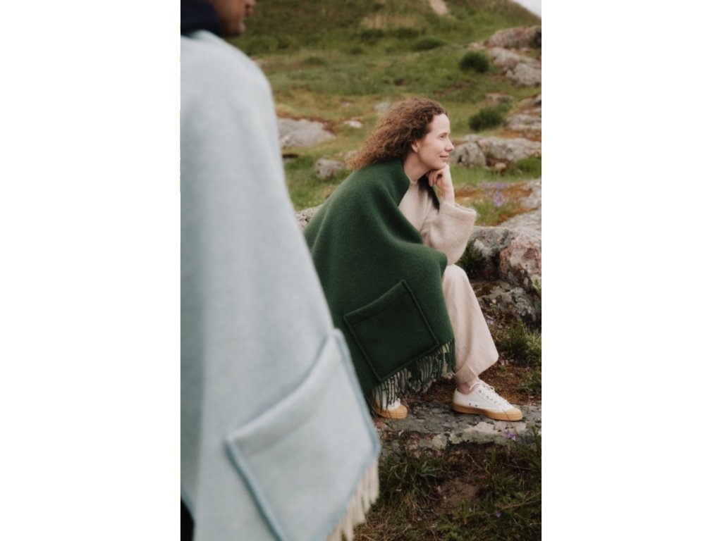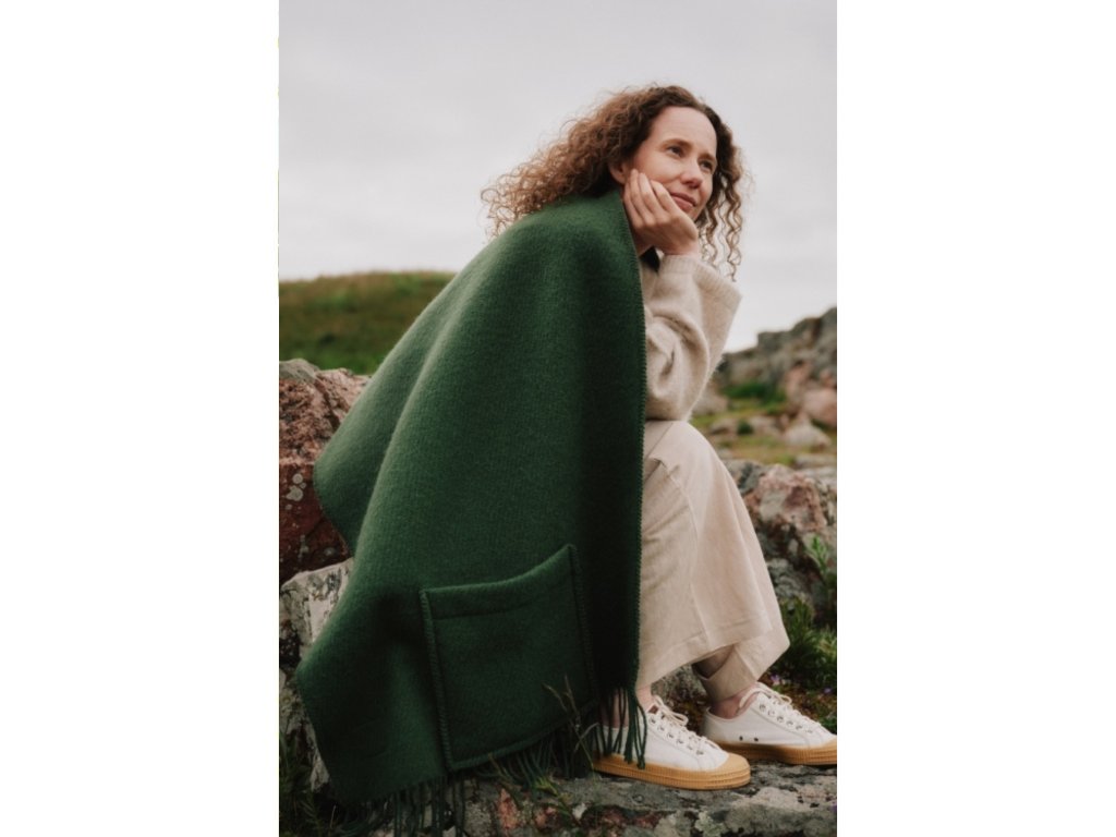 Na půlce cesty mezi šálou, svetrem a dekou... to je krásný a teplý šál z čisté vlny, který vás zahřeje venku i doma a vaše ruce už díky kapsám nebudou mrznout.