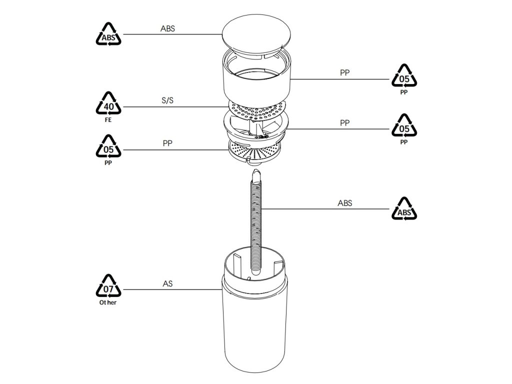 Materiál: plast (ABS, AS A PP) a nerezová ocel