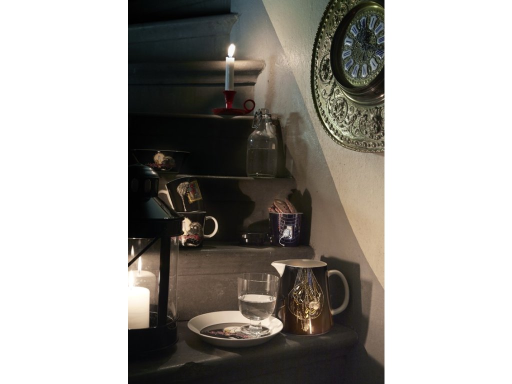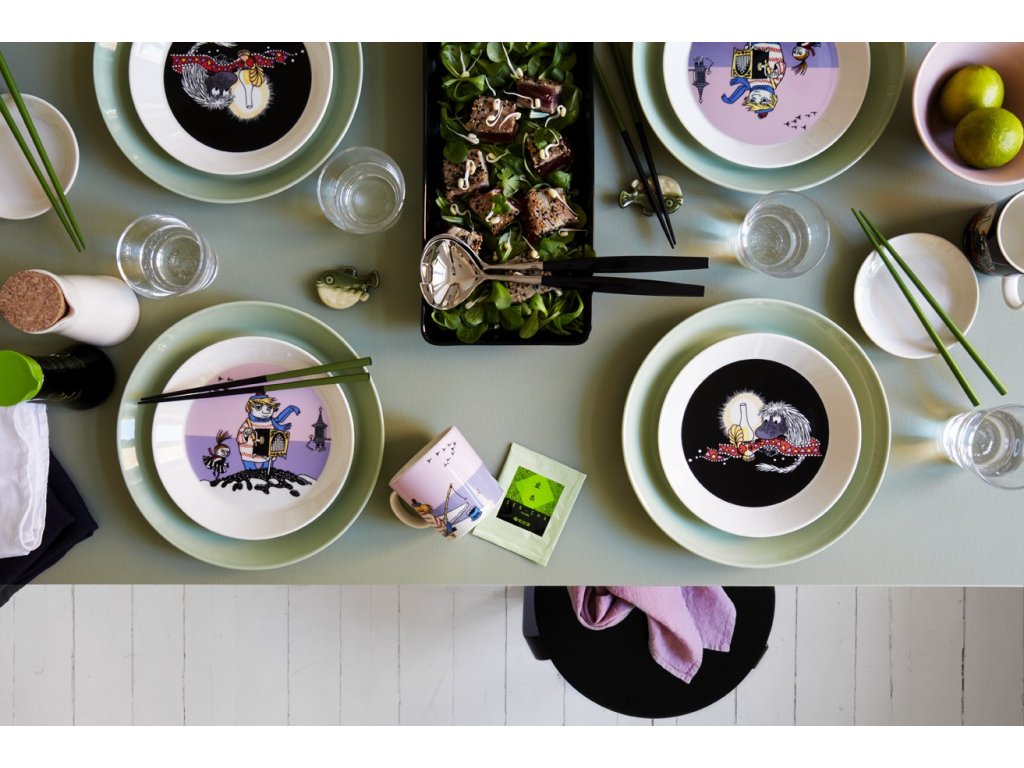 Moomin by Arabia, jak již název napovídá, spadá pod finskou značku designového nádobí Arabia, založenou v roce 1873. Okouzlující ilustrace na porcelánovém nádobí vypráví příběh ze slavných dětských knížek o Mumíncích, rodině roztomilých bílých trolů, kteří spolu se skřítky a zvířátky z pohádkového údolí zažívají dobrodružství a čelí různým nesnázím.