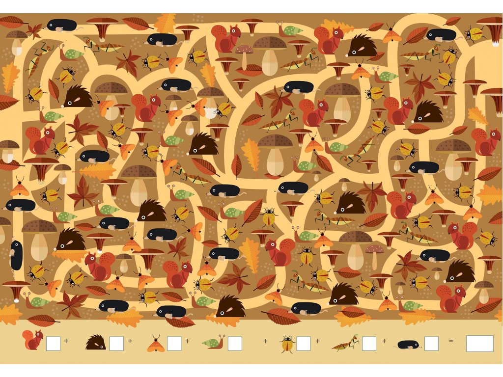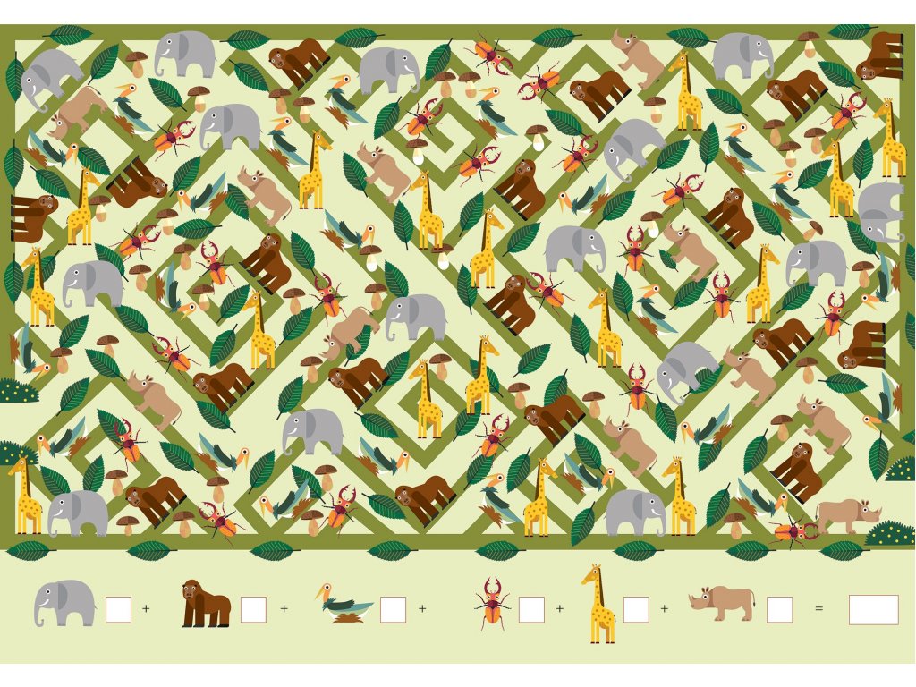 V této velkoformátové knize mají děti možnost vyzkoušet svoji všímavost a schopnost počítat. Kniha je plná bludišť s různými zvířátky, které mají děti za úkol najít a spočítat. Na konci knihy potom najdou klíč se správným řešením, který jim prozradí, jak dobře si při počítání vedli.